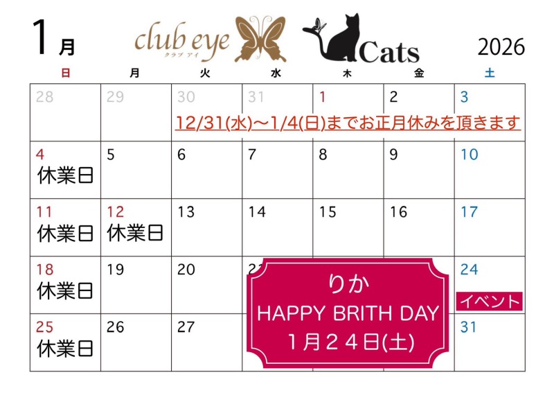 今週は1月20日火曜日と22日木曜日以外毎日クラブアイに出勤します😊