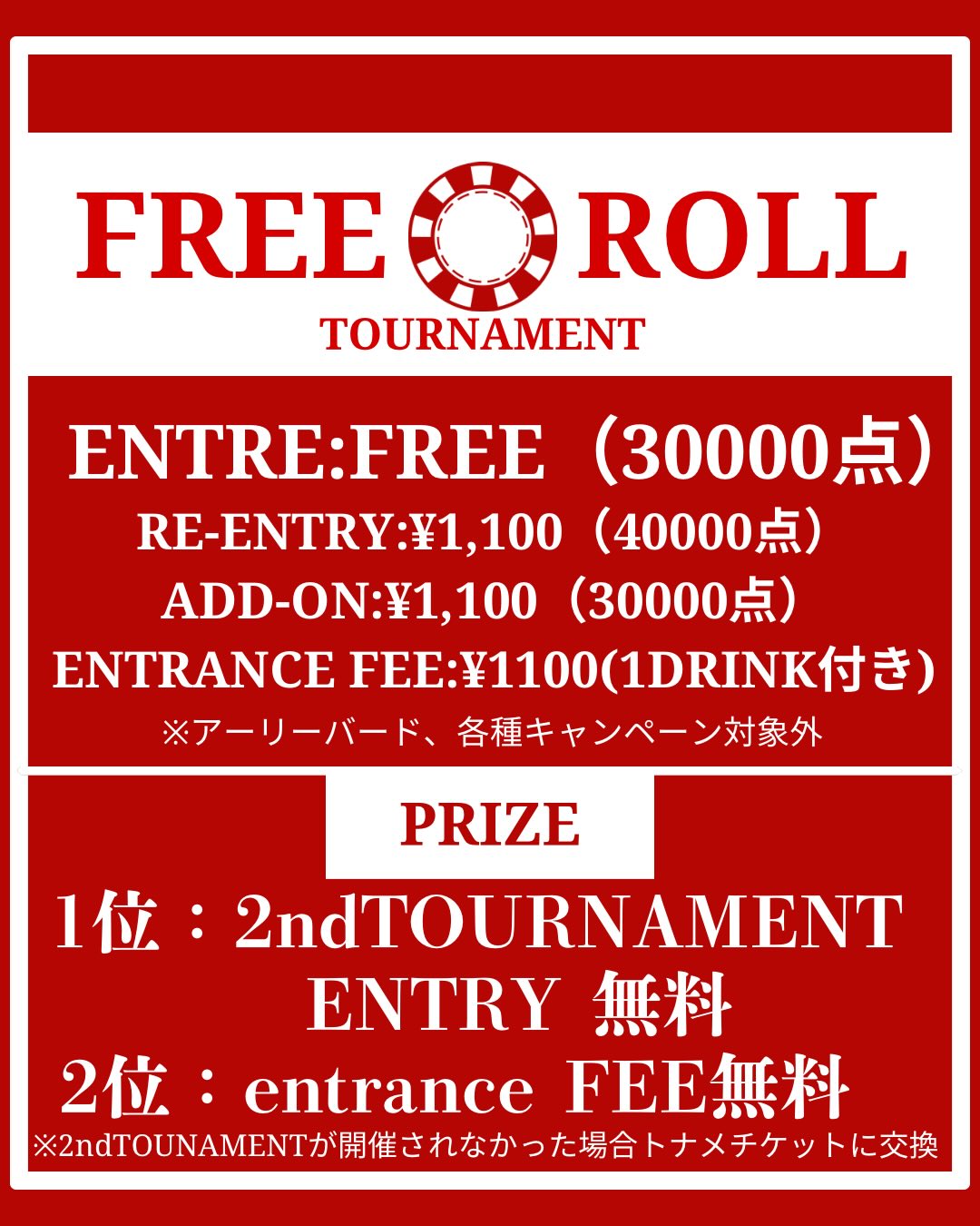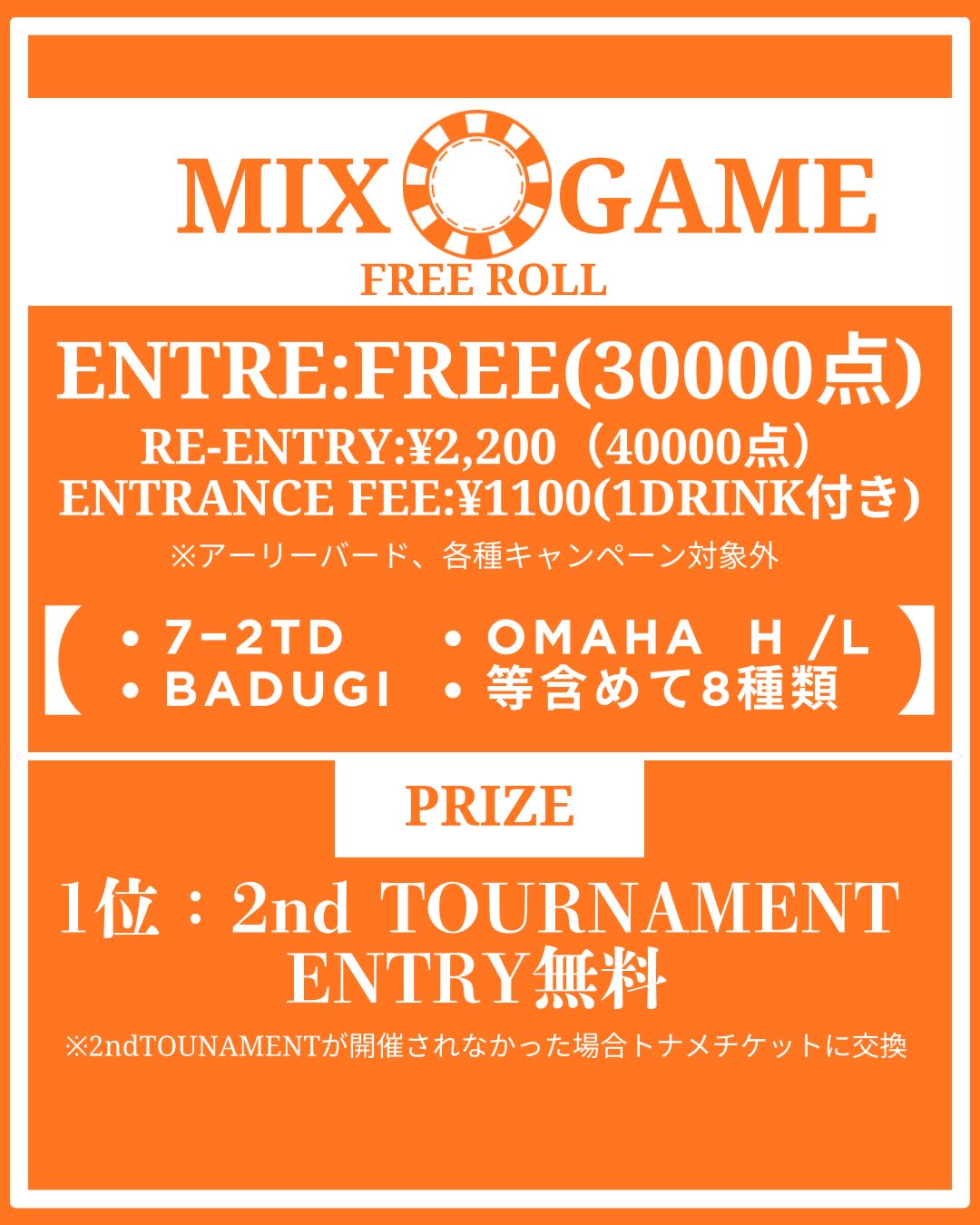 「DAILY TOURNAMENT」「FREEZE OUT」「FREE ROLL」の内容に変更がございます。
